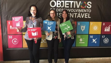 A superintendente da Fecomércio-MS, Valmira Carvalho, a diretora de planejamento e programas sociais do Sesc MS, Ana Carina Mello, e a Diretora de Gestão Corporativa do Senac MS, Michele Kist, participam do evento realizado com a presença de representantes das instituições de vários Estados.