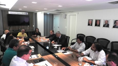 Durante reunião realizada na sede da Fecomércio-MS, nesta tarde (28/03), estiveram reunidos o Superintendente do Procon-MS, advogado Marcelo Salomão, acompanhado do chefe de fiscalização, Rodrigo Vaz, e do assessor jurídico, Erivaldo Marques, representantes das ópticas por meio da Câmara Setorial do Sindivarejo e de empresários do setor, com o presidente do Sindivarejo, Edison Araújo, executivo do sindicato, Sebastião da Conceição e a superintendência da Fecomércio-MS, Valmira Carvalho.